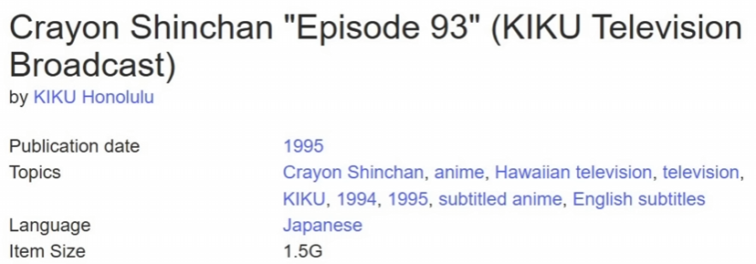 映像内に英語の字幕がついておりますが、放送されていたのはハワイの日本語テレビ局「KIKU-TV」で、発見者の両親が1990年代に友人から入手したVHSテープに入っていたものだそうです。