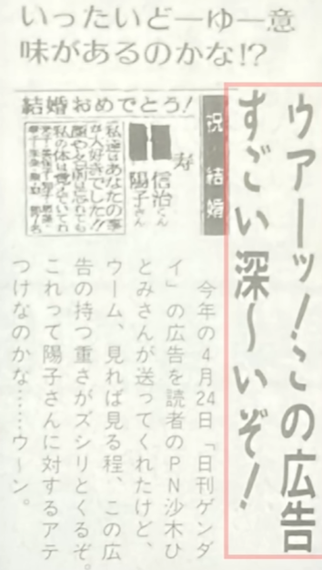 あの「結婚おめでとう」と記載された広告、実は新郎自身が掲載してもらった可能性が高いと思われます。